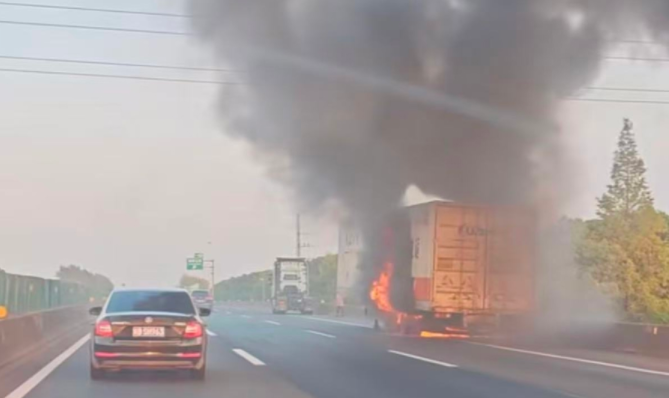 10月6日,上海绕城高速内圈近浏翔公路路段,一辆半挂货车后轮起火,事故未造成人员伤亡。
