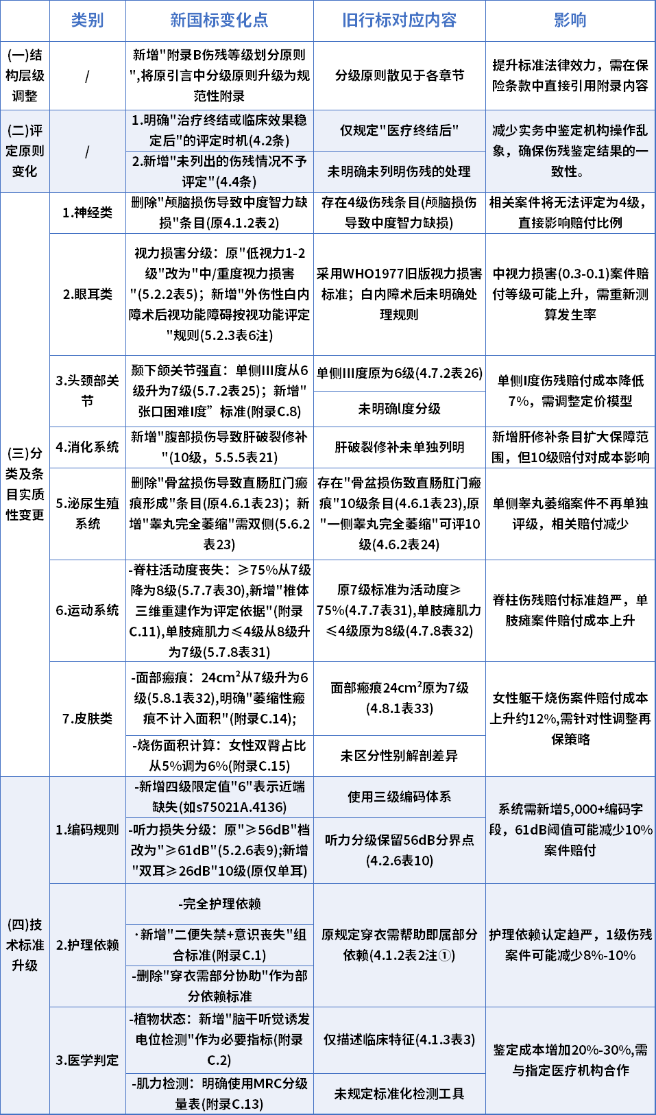 总之,新国标相较于旧行标更具权威性,也更为标准化,能让伤残覆盖范围更为全面且精准,同时也更有利于减少理赔纠纷。