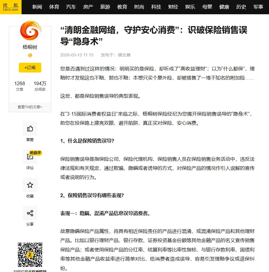 每年的“3·15”,既是对企业消保工作的集中检视,也是梧桐树与消费者深度沟通的重要节点。围绕2026年“清朗金融网络 守护安心消费”主题,梧桐树在宣传教育周期间,通过图文、短视频等形式发布系列风险提示,将专业消保知识拆解成消费者听得懂、记得住的生活常识。这只是梧桐树日常消保工作的一个缩影,更多的守护发生在具体的服务场景里。
